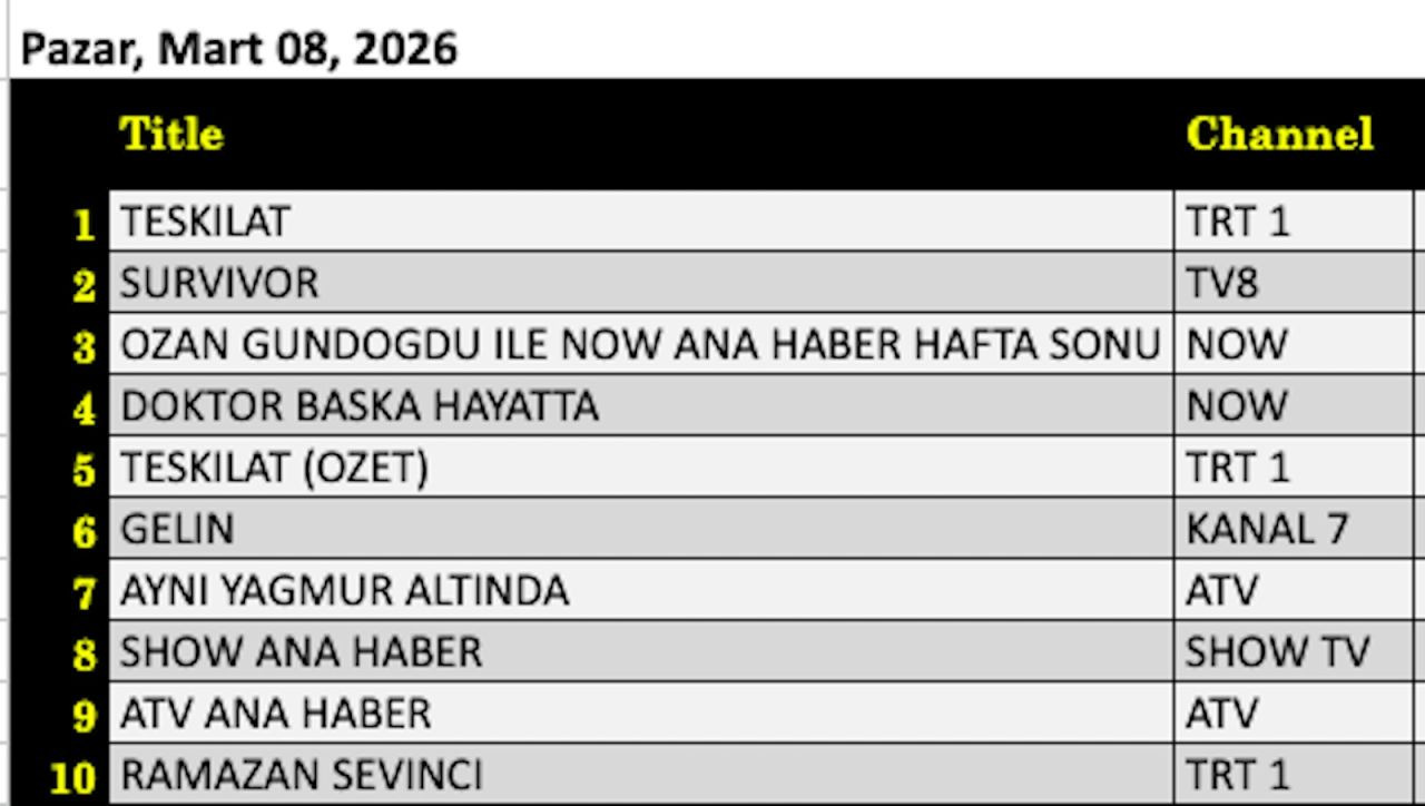 8 Mart 2026 Total Reyting Analizi