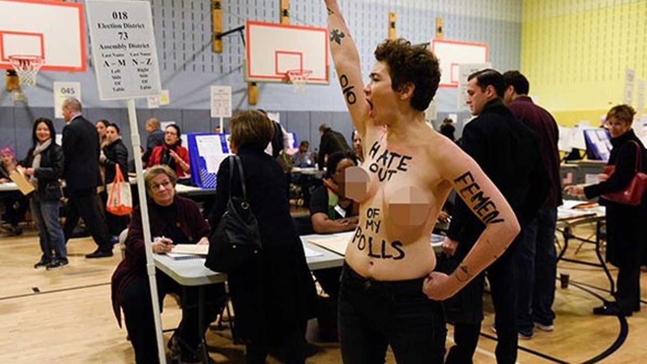 ABD başkanlık seçimlerinde Cumhuriyetçi aday Donald Trump'ı protesto etmek için soyunan iki kadın gözaltına alındı. Ukrayna kökenli kadın örgütü FEMEN, ABD başkanlık seçimlerinde de eylem gerçekleştirdi.