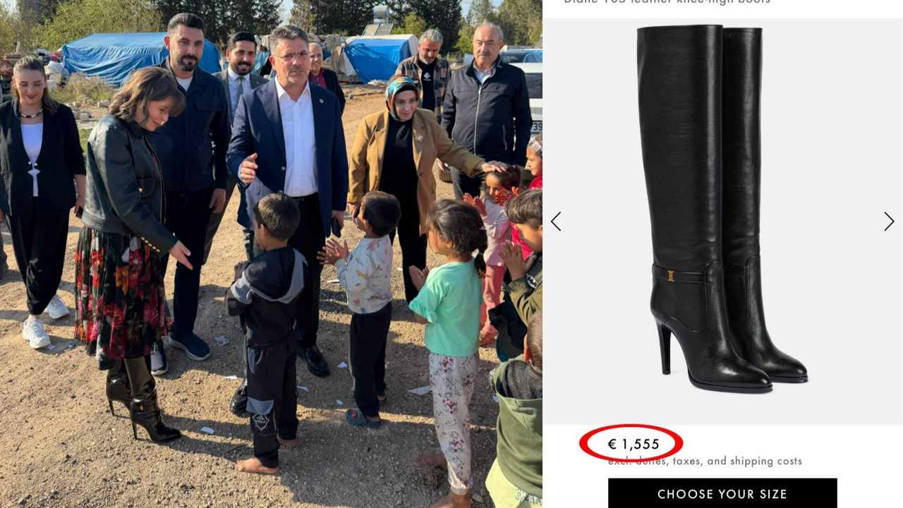 AKP İl Başkan Yardımcısı Filiz Kepme, Çukurova’nın Esentepe Mahallesi’ndeki yoksulları ziyaret etti. Çoluk çocuk konuşup ihtiyaçlarını sordu. Ayağında 1.555 Euroluk yani 76.700 liralık çizmesiyle fakirlere yardım için giden AKP’li İl Başkan Yardımcısı, ülkemizin geldiği noktayı acı şekilde özetledi.