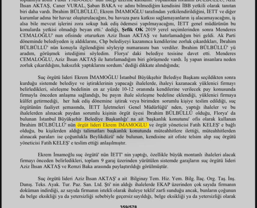 578 sayfalık iddianamede Silivri'de tutuklu İBB Başkanı Ekrem İmamoğlu'nun adının da birçok kez geçtiği görüldü.