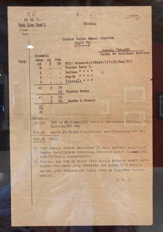İşte bu kayıtlara dayanılarak Atatürk’e Cumhurbaşkanlığında ayda 126 lira 28 kuruş asker emeklisi maaşı alması kararlaştırılıp, ödenmiş…