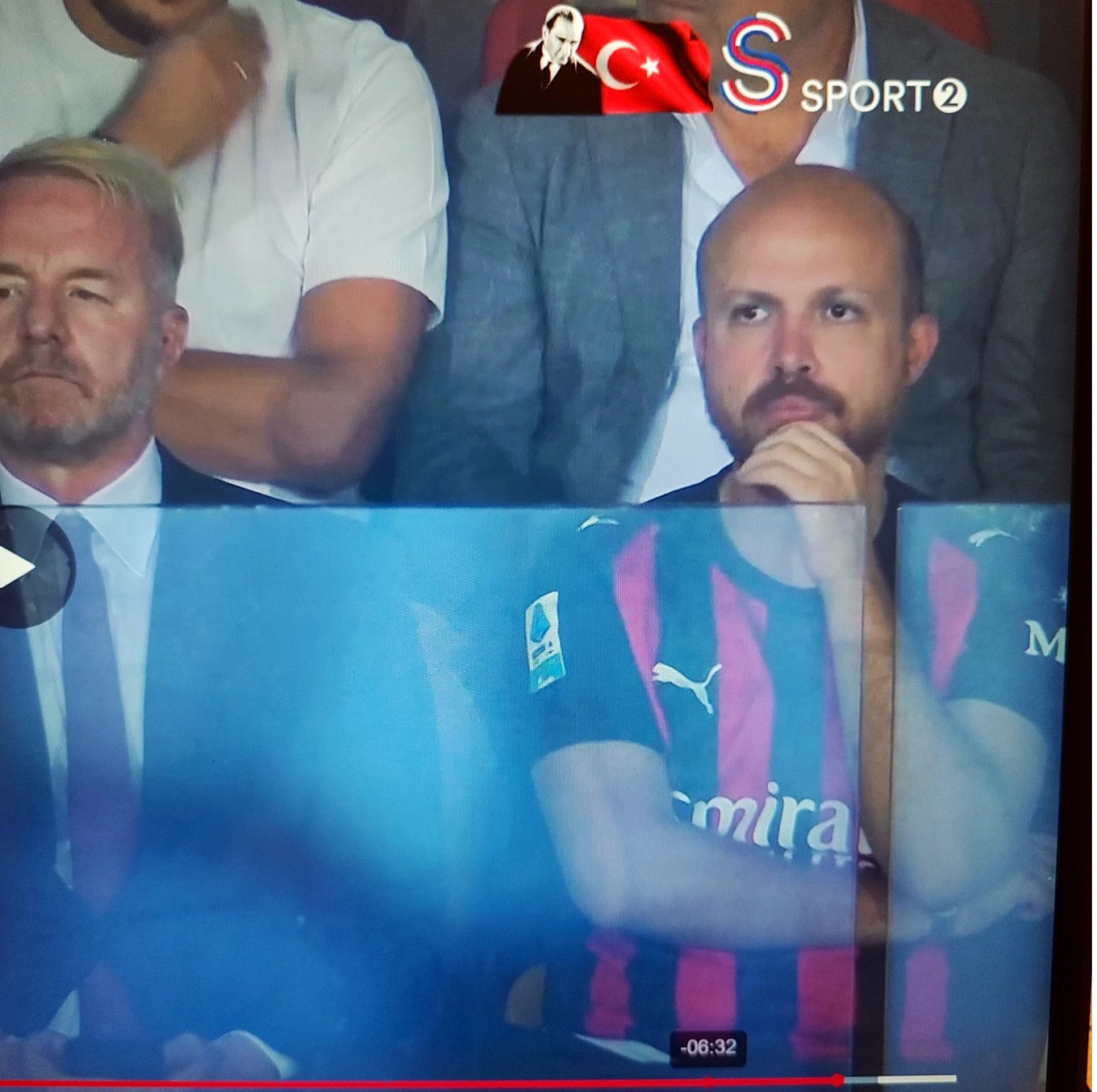 Tribünlerde Milan’ın efsanevi futbolcusu ve sportif direktörü Arnavut Igli Tare’nin hemen yanında Cumhurbaşkanı Recep Tayyip Erdoğan’ın oğlu Bilal Erdoğan’ın oturduğu görüldü.