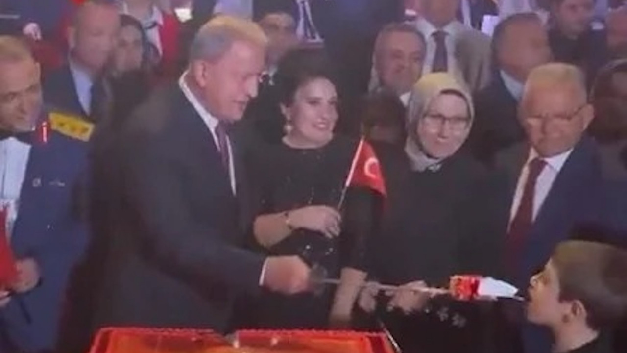 Akar, kılıçla kesilen pastayı küçük bir çocuğa yedirdi. O anlarda Akar'ın yanında bulunan Kayseri Büyükşehir Belediye Başkanı Memduh Kılıç'ın eşi Dr. Necmiye Büyükkılıç çocuk için endişelendi ve hamle yaptı.