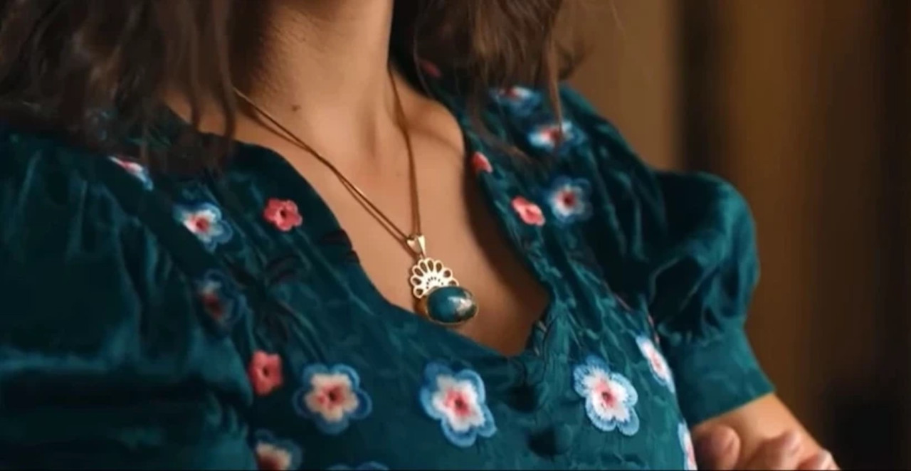 Halef dizisinde Biran Damla Yılmaz'ın canlandırdığı Yıldız karakterinin uzun kolyesi, sahnenin devamında birden kısalıyor. Bu çekim hatası izleyicinin gözünden de kaçmadı.