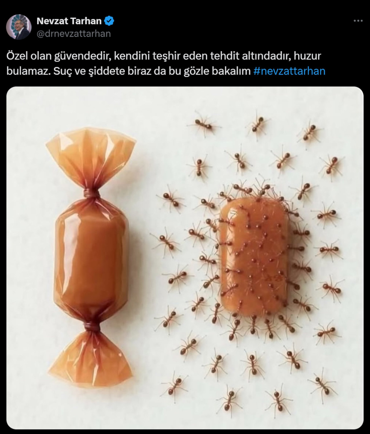 Üsküdar Üniversitesi Rektörü Prof. Dr. Nevzat Tarhan sosyal medyada yaptığı paylaşımla gündeme geldi. Tarhan’ın, “Özel olan güvendedir, kendini teşhir eden tehdit altındadır, huzur bulamaz. Suç ve şiddet olaylarına biraz da bu gözle bakalım” ifadelerini kullandığı paylaşımına tepki yağdı.