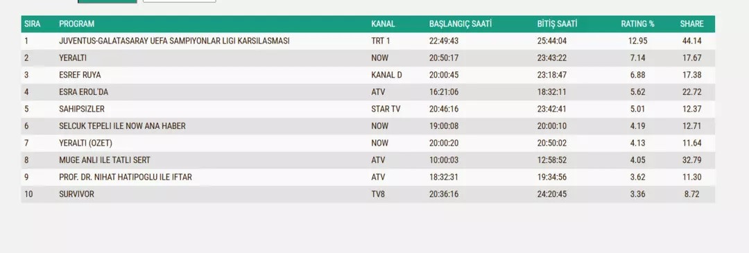 İşte 25 Şubat reyting sıralaması: