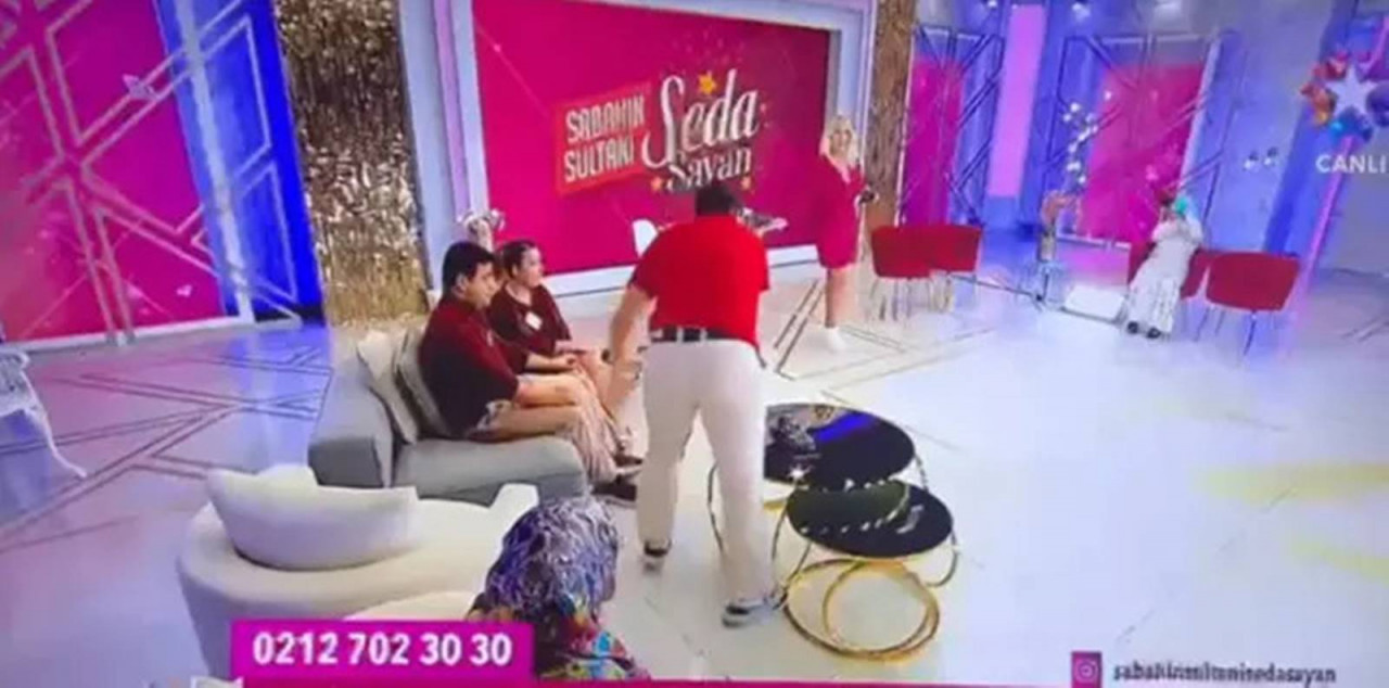 'Sabahın Sultanı Seda Sayan' programında ağızları açık bırakan anlar yaşandı. Canlı yayına katılan Ali isimli şahıs, eski eşine ''Pislik, maymun suratlı'' diyerek önce hakaret etti masada gördüğü objeyi kadına fırlattı.