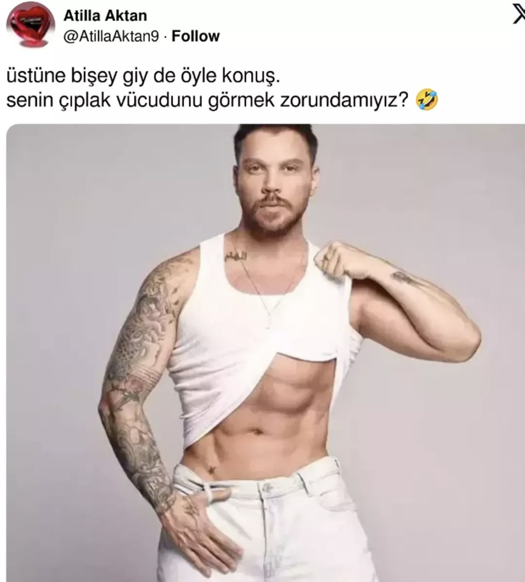 Sosyal medyada bu paylaşımlar sonrası Sinan Akçıl'ın sık sık paylaştığı üstsüz fotoğraflar hatırlatıldı.