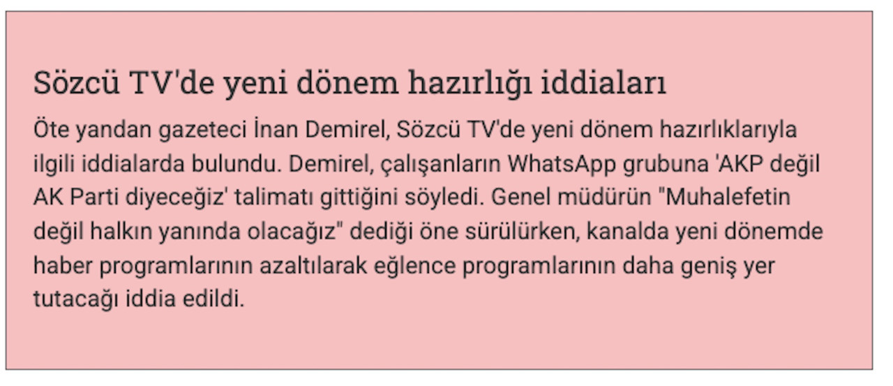 İşten çıkarılan muhabir Fırat Fıstık da "2 yıldır emek verdiğim Sözcü TV'den yönetim değişikliği nedeniyle bugün 14 çalışma arkadaşımla birlikte çıkarıldığımı öğrendim. Şartlar ne kadar zor olsa da, elbette gazetecilik yapmaya devam edeceğiz. Yeni yerlerde buluşmak dileğiyle" demişti.