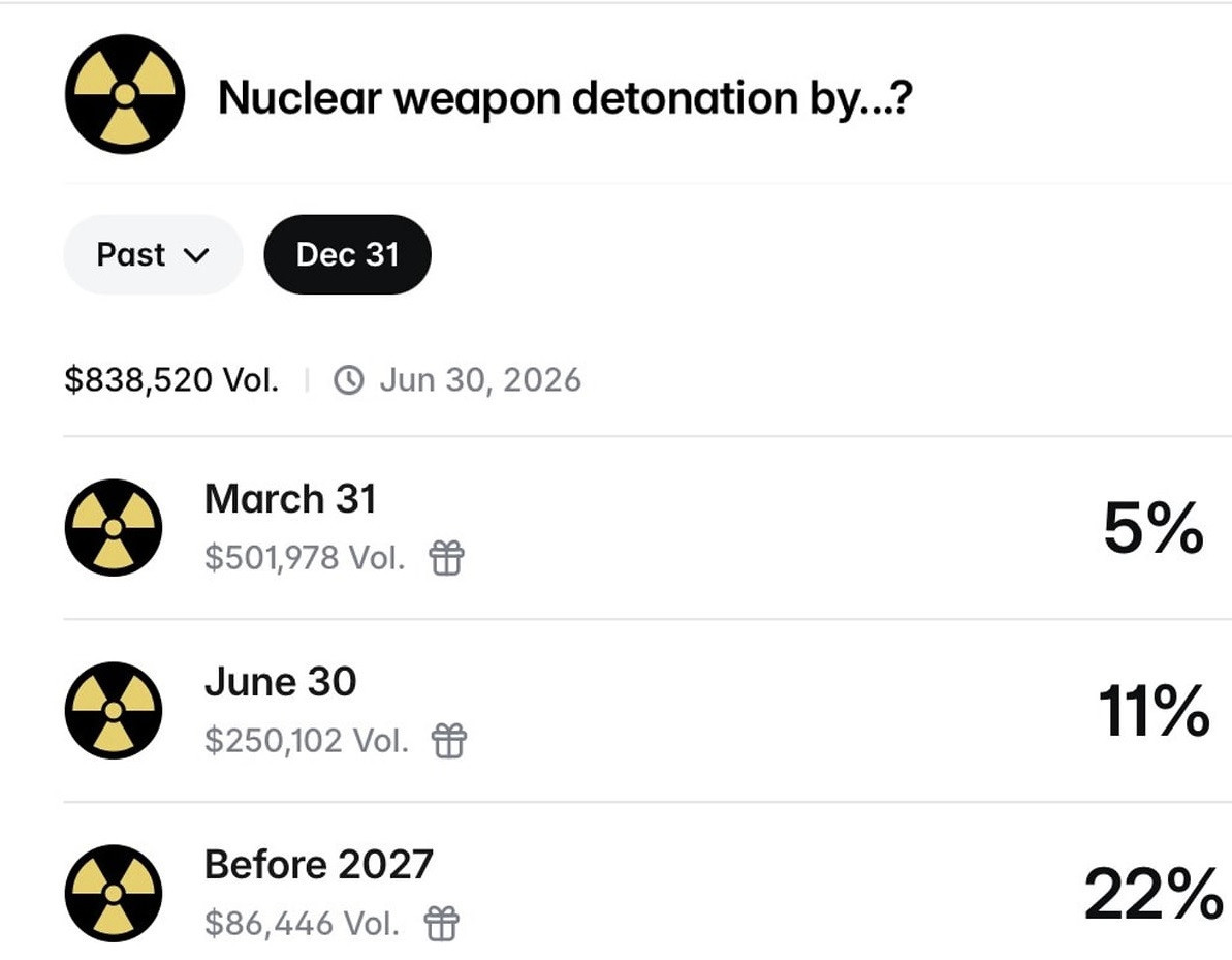 Politik konularda açtığı bahislerle gündeme gelen bir platform dünyada nükleer silah patlaması olasılıklarını bahse açan firma tartışmaların odağında kendisini buldu.