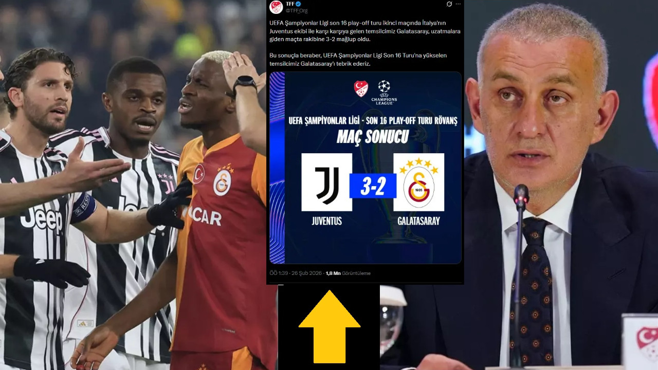 Galatasaray'ın UEFA Şampiyonlar Ligi son 16 play-off turunda Juventus'u eleyerek tur atlamasının ardından Türkiye Futbol Federasyonu'nun yaptığı paylaşım tartışma yarattı.