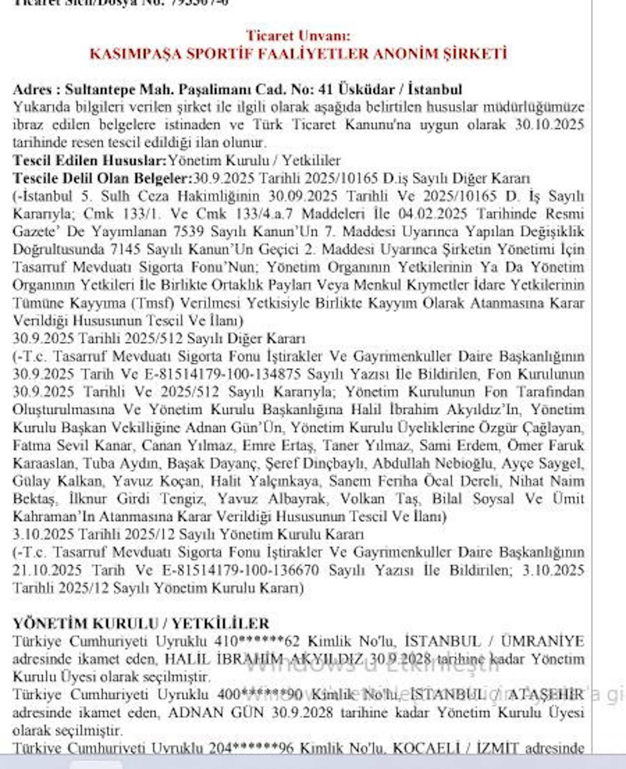MedyaRadar'dan Ercan Öztürk'ün haberine göre, İstanbul Cumhuriyet Başsavcılığınca Can Holding’e yönelik yürütülen soruşturmada, Can Holding A.Ş. ile Ciner Grubu bünyesinde faaliyet gösteren Park Holding A.Ş. arasında mali ve ticari bağların bulunduğu, bu bağ üzerinden gerçekleştirilen işlem ve faaliyetlerle suçtan elde edilen gelirlerin aklanmasına hizmet edildiğine dair kuvvetli şüphe bulunduğu belirlendi. Daha önce el koyma tedbiri uygulanarak kayyum ataması yapılan şirketlere ek olarak, her iki grup bünyesinde başka şirketlerin de aktif olarak faaliyetlerini sürdürdüğü tespit edildi. O şirketlerden biri de Kasımpaşa Sportif Faaliyetler A.Ş.'ydi. TMSF, aralarında Kasımpaşa Spor Kulübü'nün de bulunduğu 18 şirkete kayyum atadı.