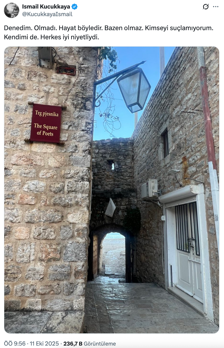 “Denedim. Olmadı. Hayat böyledir. Bazen olmaz. Kimseyi suçlamıyorum. Kendimi de. Herkes iyi niyetliydi.”