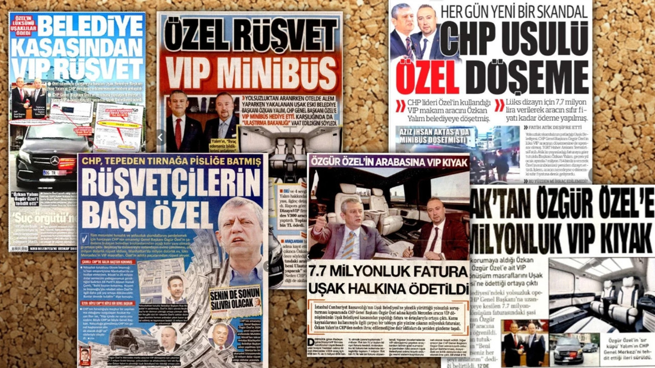 Akşam, "Belediye Kasasından VIP Rüşvet"; Türkiye Gazetesi, "CHP Usulü Özel Döşeme"; Takvim, "Özel Rüşvet VIP Minibüs"; Sabah, "Uşak'tan Özgür Özel'e 8 milyonluk VIP Kıyak"; Yeni Akit, "Rüşvetçilerin Başı Özel"; Diriliş Postası, "7.7 Milyonluk Fatura Uşak Halkına Ödetildi" başlıklarını attı.