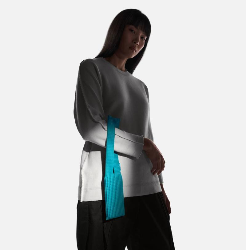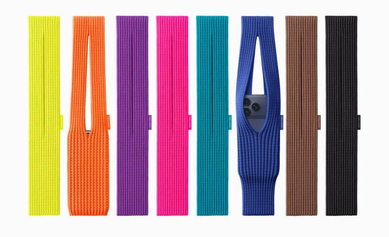Apple, yeni ürünün "'bir kumaş parçası' konseptinden ilham aldığını ve iPhone'u tamamen sararken günlük eşyalara uyacak şekilde genişleyen benzersiz bir 3 boyutlu örme yapıya sahip olduğunu" ifade ediyor.