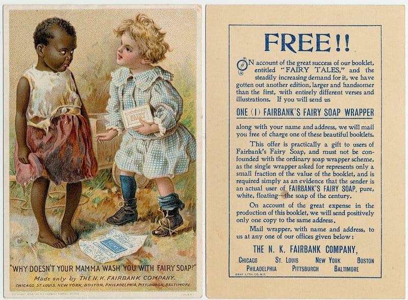 Fairbank's markasının "Why Doesn't Your Mamma Wash You With Fairy Soap?" sloganı yakın dönemde "ırkçılık" konulu söyleşilerde sıkça paylaşılır oldu. Ancak dönemin toplumsal koşulları ve rekabet ortamında Afro Amerikan resimli slogan üretmek oldukça yaygındı.