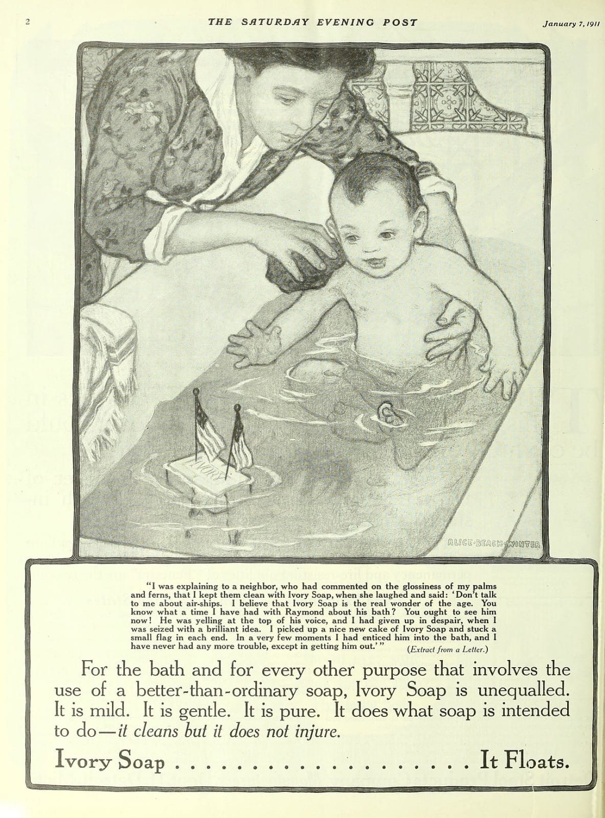 19.yy'da ırmak kenarında banyo yapma kültürü yaygındı. Bu koşullarda batmayan bir sabun üretme fikrinden yola çıkan James Gamble'in kimyager oğlu, 1879 yılında "'vory Soap"i yarattı. Fildişi anlamına gelen "Ivory", saf beyazlık ve batmayarak suda yüzebilme iddiası ile ön plana çıktı.