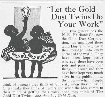 Aynı marka o tarihlerde piyasaya sürdüğü "Gold Dust" adlı sabun tozu tanıtımında genellikle siyahi çocukları reklam yüzü olarak kullanmıştı. Sabun tozu kutusu üzerinde neşeyle dans eden Afro Amerikan Gold Dust ikizleri görseli o yıllarda epeyce meşhurdu.